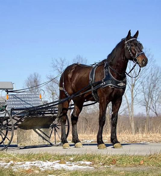 Hank is a 10-year-old Standardbred. He has been pulling Amish buggies his entire life. His attributes are in his strength, endurance and calm temperament.